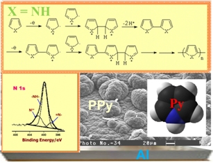 This work investigated the pyrrole electropolymerization on aluminium from phosphoric acid solutions. A mechanism is proposed to explain the protection of aluminium against corrosion by PPy coating in chloride medium