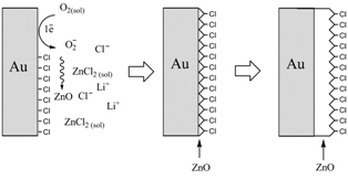 The influence of different anions and their concentration on the characteristics of ZnO electrodeposits were studied in dimethylsulfoxide (DMSO) medium. Changes in the nucleation and growth mechanism during the electrochemical process are directly related to the electrolytic solution composition