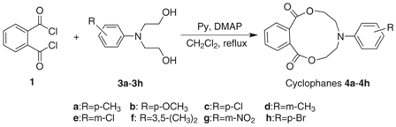 Several novel cyclophanes were synthesized by esterification reactions under high dilution conditions. Some of these compounds have low antifungal or antibacterial activities