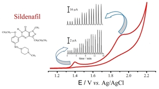 Fast and low-cost methodology for the determination of sildenafil in different types of pharmaceutical samples using a flow injection analysis (FIA) system with multiple pulse amperometric detection on a boron-doped diamond electrode is presented. Excellent reproducibility and high analytical frequency were obtained under these conditions