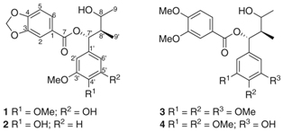 Four new 7,8-secolignans (neglectahenols A-D) were isolated from leaves and stems of Schisandra neglecta, and neglectahenols A-D showed modest anti HIV-1 (human immuno-deficiency virus type 1) activities with therapeutic index (TI) values of 58.65, 26.36, 23.71 and 25.85, respectively