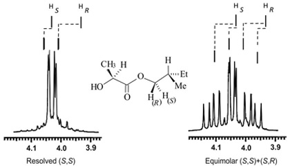 Configurations for the original acids were attributed, chemical shifts of the geminal protons were assigned and enantiomeric compositions were determined. The suggested structural model correlates the deshielding effects of the ethyl and methyl groups over the protons situated in the opposite face.