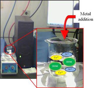 In the present work was evaluated the complexation capacity and conditional stability constant of organic matter from typical agricultural areas and from urban areas with copper and nickel ions was evaluated using a luminescence spectrofluorometer.