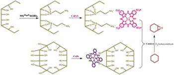 Cobalt tetrasulfophthalocyanine was anchored onto the surface of NH2-MCM-41 and NH2-MCM-48. Physical mixtures of CoPc in MCM-41 and in MCM-48 were also prepared. The catalytic properties of these materials were studied in the aerobic epoxidation of cyclohexene.