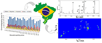 Two-dimensional gas chromatography showed superior potential compared to one-dimensional gas chromatography for the characterization of Brazilian Moscatel sparkling wines, which showed a homogeneous volatile signature.