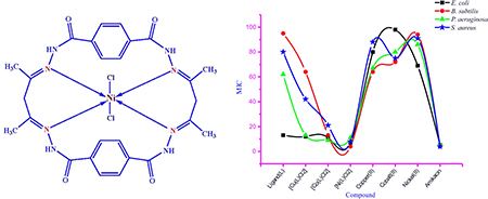 The present work shows the coordination chemistry of CoII, CuII and NiII complexes and the synthesized macrocyclic ligand. The mononuclear complexes were characterized by various spectroscopic techniques. In the search of new antimicrobial agents, these complexes were screened in vitro for their antimicrobial activities and the effect of the central metal attached in these complexes and the macrocyclic ligand were compared.