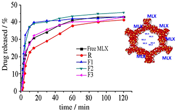 MCM-41 was used for poorly water soluble meloxicam (MLX) as model drug. The in vitro release of MLX was performed at pH 1.2 and 6.8.