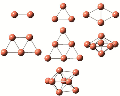 Second-order Douglas-Kroll-Hess (DKH2)-Becke three-parameter for exchange and Perdew-Wang 91 for correlation/valence double zeta quality basis set plus polarization functions-DKH optimized ground state structures for the neutral copper clusters, Cun (n = 2 - 8).