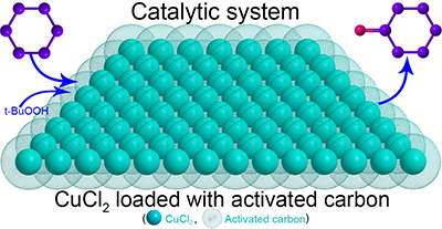 CuCl2 loaded with activated carbon had synthesized and then utilized as a catalyst for the oxidation of cyclohexane with molecular oxygen as the oxidant and the tert-butylhydroperoxide as the co-oxidant under various conditions.