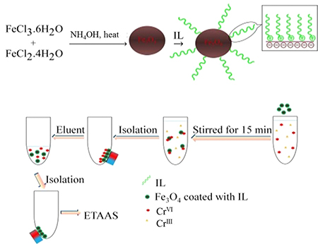 Synthesis route of magnetic nanoparticles coated with ionic liquids and its application for solid phase extraction of CrVI.