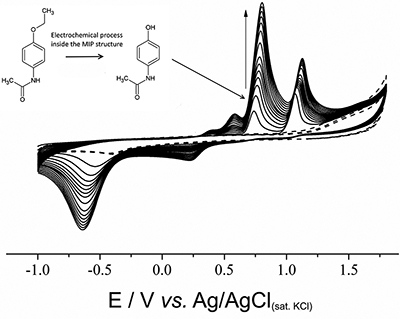 A phenacetin-selective molecularly imprinted polymer (MIP) was synthesised and showed a high recognition ability for procaine and aminopyrine. In addition, the MIP also presented the ability to preconcentrate phenacetin and also some intermediates, such as acetaminophen.
