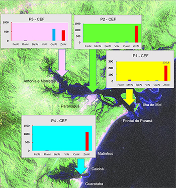Estimated crustal enrichment factors (CEF) indicate that atmospheric Zn is derived from anthropogenic sources and that atmospheric deposition may be a main input of this element in subtropical estuarine systems of Southern Brazil.