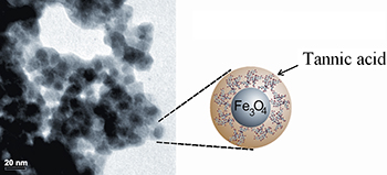 How to cite this articleThrough molecular recognition and self-assembly processes, we developed new hybrid nanomaterial composed of tannic acid and magnetite. Combining experimental and theoretical analyses, we studied the physico-chemical properties of this material as well as the fundamentals of interaction between the organic and inorganic phases. The interaction of these two materials resulted in a final product able to be easily dispersed in water. Using the magnetic property of magnetite and biocompatibility of tannic acid, this material is attracting for applications whose aiming is reaching specific and localized targets in biological media. Details are presented in the Article Hybrid Self-Assembled Materials Constituted by Ferromagnetic Nanoparticles and Tannic Acid: a Theoretical and Experimental Investigation by Anderson F. M. Santos, Lucyano J. A. Macedo, Mariana H. Chaves, Marisol Espinoza-Castañeda, Arben Merkoçi, Francisco das Chagas A. Lima and Welter Cantanhêde on page 727.