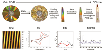 Construction and characterization of electrode using 3 kinds of gold recordable compact discs for biosensor development.