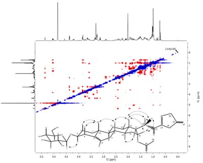Rotating frame nuclear Overhauser effect spectroscopy (ROESY) correlations were used in the elucidation of the overall stereochemistry of the three alkaloids obtained from S. pseudoquina A. St.-Hil.