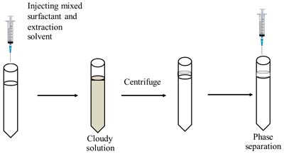 To the sample solution, appropriate amounts of DDTC (complexing agent) and NaPF6 were added. After standing for 2 min, 0.5 mL methanol containing 0.13 IL was injected rapidly. After centrifuging, extraction phase was mixed with 500 µL methanol prior to the flame-AAS analysis.
