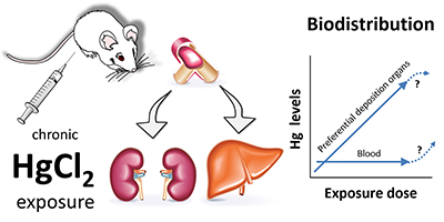 In this work we evaluated the mercury biodistribution after different doses of HgCl2. Mercury was deposited preferentially in some tissues while the blood levels remained practically constant. Therefore, it is suggested that blood mercury monitoring is relevant only when the tissues turn saturated.