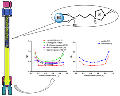 Traditional Chinese medicine injections were analyzed based on an ionic liquid column. U-Shape plots of retention factors vs. mobile phase constitutions were obtained and mixed-mode chromatography was applied for this kind of complex system.
