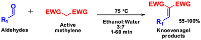 The uncatalyzed Knoevenagel condensation between aldehydes and different compounds with active methylene was performed under new conditions using a mixture of ethanol/water (3:7, v/v), showing a good isolated yields in a short reaction time.