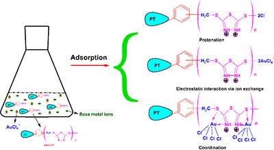 DMTD-PT, a persimmon tannin (PT)-based and 2,5-dimercapto-1,3,4-thiadiazole (DMTD) grafted biosorbent, showed the better selectivity for AuIII over coexisting base metal ions in aqueous solution.