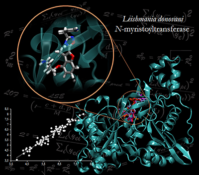 Leishmania donovani is a human blood parasite responsible for visceral leishmaniasis. Quantitative structure-activity relationship analysis and molecular docking studies were applied to a series of Leishmania donovani N-myristoyltransferase inhibitors and three new compounds were proposed. Details are presented in the Article Design of Novel N-Myristoyltransferase Inhibitors of Leishmania donovani Using Four-Dimensional Quantitative Structure-Activity Relationship Analysis by Letícia Santos-Garcia, Daniela R. Silva, Letícia C. Assis, Tamiris M. de Assis, Giovanna C. Gajo, Italo Antônio Fernandes, Teodorico C. Ramalho and Elaine F. F. da Cunha on page 1440.