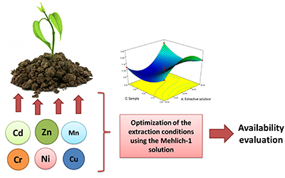 Determination of the total amount of heavy metals present in soils is not a good index to estimate the bioavailability and toxicity of these elements. This work describes the use of the Mehlich-1 extractor for evaluating the availability of Cu, Zn, Mn, Ni, Cr and Cd in soil.