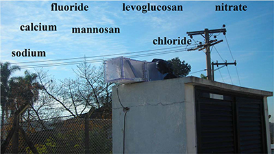 Fog sampler, an equipment used to collect fog samples at 2 roads in Sao Paulo City. Collected droplets coalesce and run down the strands, aided by gravity and aerodynamic drag, into a Teflonr sample trough.