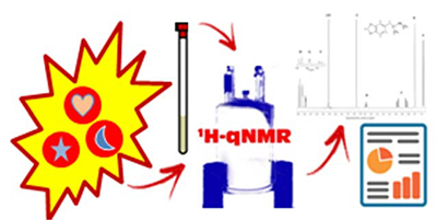 An internal standard 1H-qNMR (quantitative nuclear magnetic resonance) method was developed and validated for simple, accurate and fast quantification of 3,4-methylenedioxymethamphetamine (MDMA) in seized ecstasy tablets.