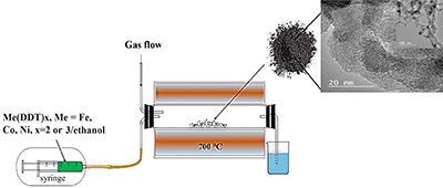Porous carbon materials were prepared from Fe, Co and Ni diethyldithiocarbamate complexes. The effect of metallic center in the morphology of porous carbon structure and the electrochemical behavior of porous carbon materials were studied.
