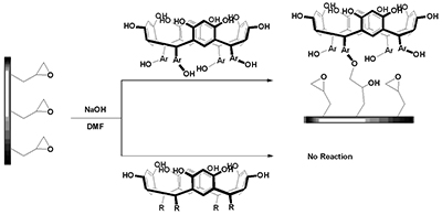 Regioselective modification of poly(2,3-epoxypropyl methacrylate-co-ethylene glycol dimethacrylate-co-methyl methacrylate) (poly(GMA-co-EDMA-co-MMA)) with resorcarenes.