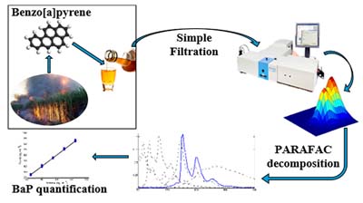 Procedure of benzo[a]pyrene (BaP) quantification in cachaças using PARAFAC to overcome the interferences.