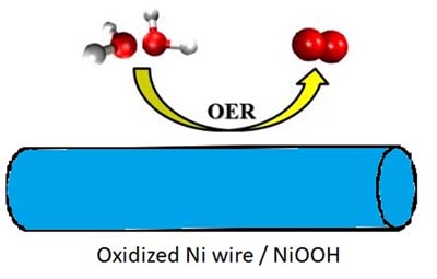 Oxygen evolution reaction (OER) on nickel wire with nickel oxyhydroxide layer.