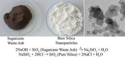 Bare silica nanoparticles were successfully synthesized from sugarcane waste ash; the particles are smaller than 100 nm and have a surface area of 63 m2 g-1.