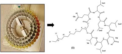 A series of pumilacidins were isolated from the solid culture of the marine-derived bacterium Bacillus sp. 4040. The structures were determined using a combination of mass spectrometry, nuclear magnetic resonance (NMR) spectroscopy and comparison with reported data.