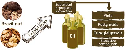 Brazil nut samples were subjected to subcritical n-propane extraction using a 23 factorial design and the chemical composition of the oil was determined and compared to the oils obtained by conventional extraction methods.