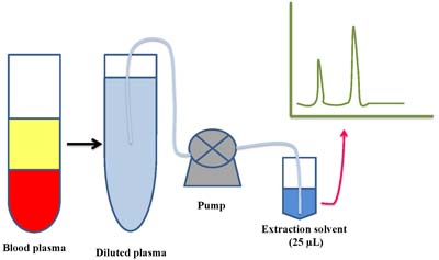 In this work, the suitability of continuous sample drop flow microextraction gas chromatography-flame ionization detector (CSDF-ME-GC-FID) is studied on the extraction and evaluation of methadone and codeine in plasma sample. This method is simple, fast and consuming low amount of organic solvent. CSDF-ME is performed without hand intervention.