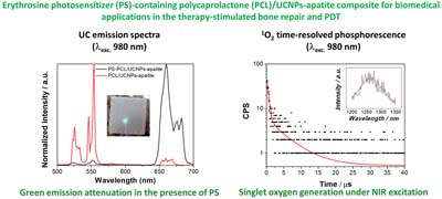 Erythrosine photosensitizer (PS)-containing polycaprolactone (PCL)/upconversion nanoparticles (UCNPs)-apatite composite for biomedical applications in the therapy-stimulated bone repair and photodynamic therapy (PDT).