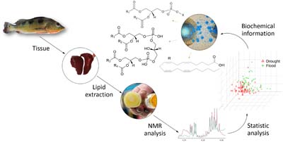 An easy-to-follow methodology for fish lipids analysis by nuclear magnetic resonance (NMR) spectroscopy is presented. Biological sample collection, sample preparation, lipid extraction, NMR spectroscopy analysis, statistical data analysis and the care needed in each step execution are explained in detail.