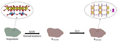 K2MgSiO4 was produced by impregnation of serpentinite rock with KOH and thermal treatment. New materials released K in a slow rate than KCl, showing potential as slow release K-fertilizers.