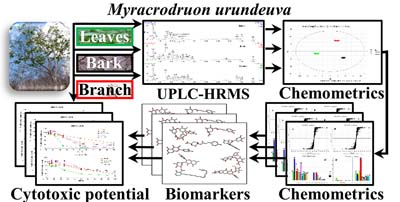 Chemical identification and determination of the biomarkers associated with the cytotoxic potential of extracts.