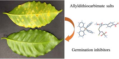 New tetraphenylphosphonium (Z)-allyldithiocarbimates synthesized inhibit the germination of phytopathogenic fungi.