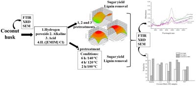 Four different pretreatments were optimized and tested in coconut waste, to evaluate its potential as source of fermentable sugars.