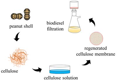 Preparation of regenerated cellulose membrane from peanut shell for purification of biodiesel.