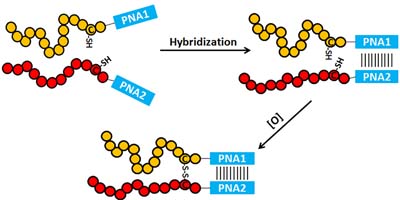 Peptides were linked to the pair of complementary peptide nucleic acid (PNAs) by native chemical ligation, respectively, and base pairing drove the two peptides into close proximity for interchain disulfide bond formation.