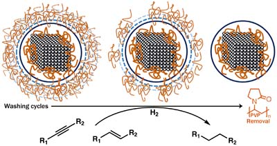 The number of washing cycles in the removal of capping agent polyvinylpyrrolidone (PVP) excess present in the outer layers of palladium nanocubes, in the post-synthesis purification step, is shown to strongly affect the catalytic activity on the hydrogenation reaction of unsaturated C−C bonds.