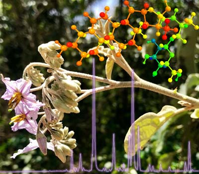 Novel 3-aminofurostane alkaloids were characterized from Solanum paniculatum roots. Two compounds were identified as new natural compounds: (25R)-3β-amino-furost-5-en-22α,26-diol O(26)-β-D-glucopyranoside (fatimagraine) and (25R)-3β-amino-furost-22-en, 26-ol O(26)-β-D-glucopyranoside (bhattacharyyaine). Details are presented in the Article 3-Aminofurostane Alkaloids from Solanum paniculatum (“Jurubeba Verdadeira”) Roots by Tania M. S. Silva, Telma M. G. Silva, Maria F. Agra and Celso A. Camara on page 1030.