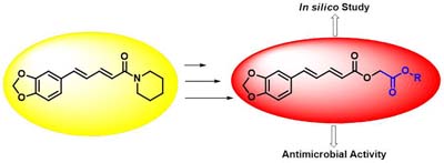 Piperine was used as a precursor in the synthesis of twelve new diester derivatives. The alkyl 2-chloroacetates were coupled to the piperic group, and their potential as new drugs was evaluated through in silico study and evaluation of in vitro antimicrobial activity.