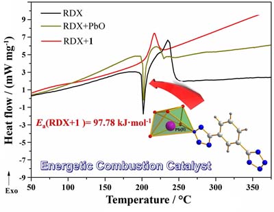 A PbII-based energetic combustion catalyst shows excellent catalytic performances on the thermal decomposition of ammonium perchlorate (AP) and cyclotrimethylenetrinitramine (RDX).