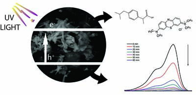 ZnO catalyst produced by the sol-gel protein route to promote the degradation of methylene blue dye and ibuprofen drug when irradiated with UV light.