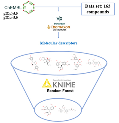 Virtual screening of a Velloziaceae family bank against Candida albicans, Escherichia coli, Pseudomonas aeruginosa and Salmonella sp., using computational tools.